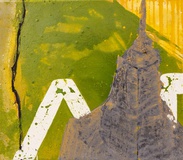 Und dann taucht noch etwas anderes auf. Fragmente von Buchstaben zum Beispiel. Oder Formen, die an Dinge erinnern. In den früheren Werken ist es häufig die Silhouette eines rituellen afrikanischen Musikinstruments, des Gonggong, etwa halbkreisförmig, mit einer Fingerschlaufe am Scheitel. Allein die reduzierte Fläche dieses Gegenstandes, seine zeichenhafte Vereinfachung, setzt sich in Beziehung zu den ungegenständlichen Bildteilen. Keine Geschichten sind aus diesen Beziehungen abzulesen, keine Handlung kann man erkennen. Aber wer aufmerksam die Formen und Farben beobachtet, spürt vielleicht ein Gefühl, eine Referenz an einen machtvollen afrikanischen Kode.