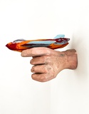 Aber von Bedrohung keine Spur. Seltsam, diese Kombinationen, absurd und skurril. Nicht zuletzt, weil die Größenverhältnisse der Originale einfach außer Acht gelassen werden: die menschlichen Gestalten jeweils so groß, dass ihr Gegenüber zum Requisit mutiert. Löwe und Elefant werden zu Spielplatzfiguren, zu Kletter- und Streichelobjekten. Die Männer, die auf den Raketen sitzen oder sie wie Wurfgeschosse mit sich tragen, würden in ihren Flugobjekten niemals Platz finden. Ebenso wenig in der Kirche, deren Dach dem Gewicht eines anderen Riesen erstaunlicherweise standhält.
