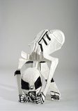 Auch Maike Gräf reizt in ihren Arbeiten die Spannung zwischen materiellen Konnotationen und der inhaltlichen Ebene ihrer Figuren aus. Besonders ihr „hölzernes“, archaisches Formenvokabular, das im Motiv von skurrilen Skelettwesen seit etwa vier Jahren im Werk der Künstlerin durchdekliniert wird, ist voll und ganz materialgebunden. Die kubistisch wirkende Facettierung der Körper, die Maike Gräf